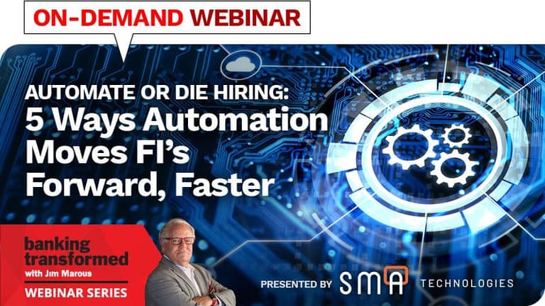 Join Jim Marous and SMA Technologies’ CEO Todd Dauchy to hear how the growing trend of automation will free up IT staff time so they can focus on more strategic contributions to move your business forward. The days when automation was relegated to core processing are over. We’ll cover ideas and best practices to show you first-hand how automation can turbo charge: