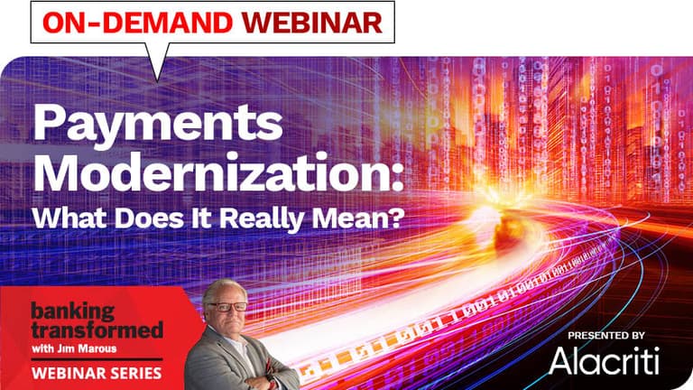 Join us for this session as Jim Marous and Al Griffin, Principal Solutions Consultant at Alacriti tackle the tough questions surrounding payments modernization and orchestration, why some financial institutions are lagging behind challenger banks and neobanks, and how they can position themselves to compete in the payments landscape.