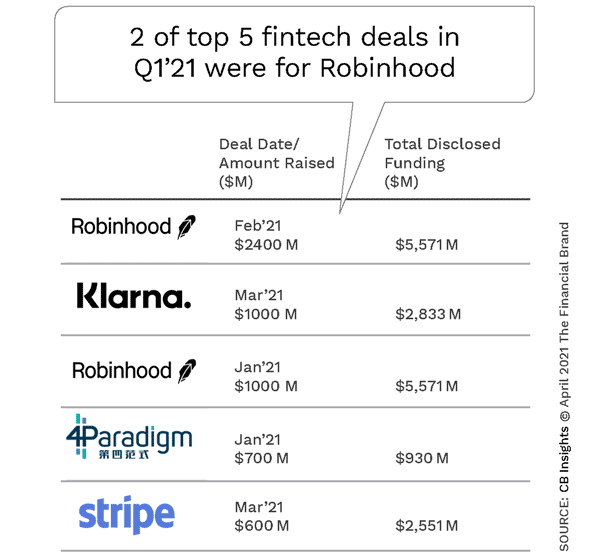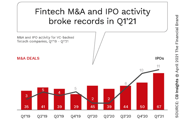 The quarterly "State of Fintech Q1'21 Report", published by CB Insights provides a recap of global funding trends, sector-by-sector analysis, as well as a recap of major happenings in the fintech space during the quarter. This report also serves as a guide to what segments of banking are being prioritized by the marketplace.